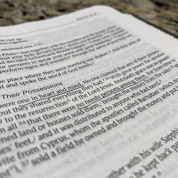 "All the believers were one in heart and mind. No one claimed that any of their possessions was their own, but they shared everything they had. With great power the apostles continued to testify to the resurrection of the Lord Jesus. And God’s grace was so powerfully at work in them all that there were no needy persons among them. For from time to time those who owned land or houses sold them, brought the money from the sales and put it at the apostles’ feet, and it was distributed to anyone who had need. "